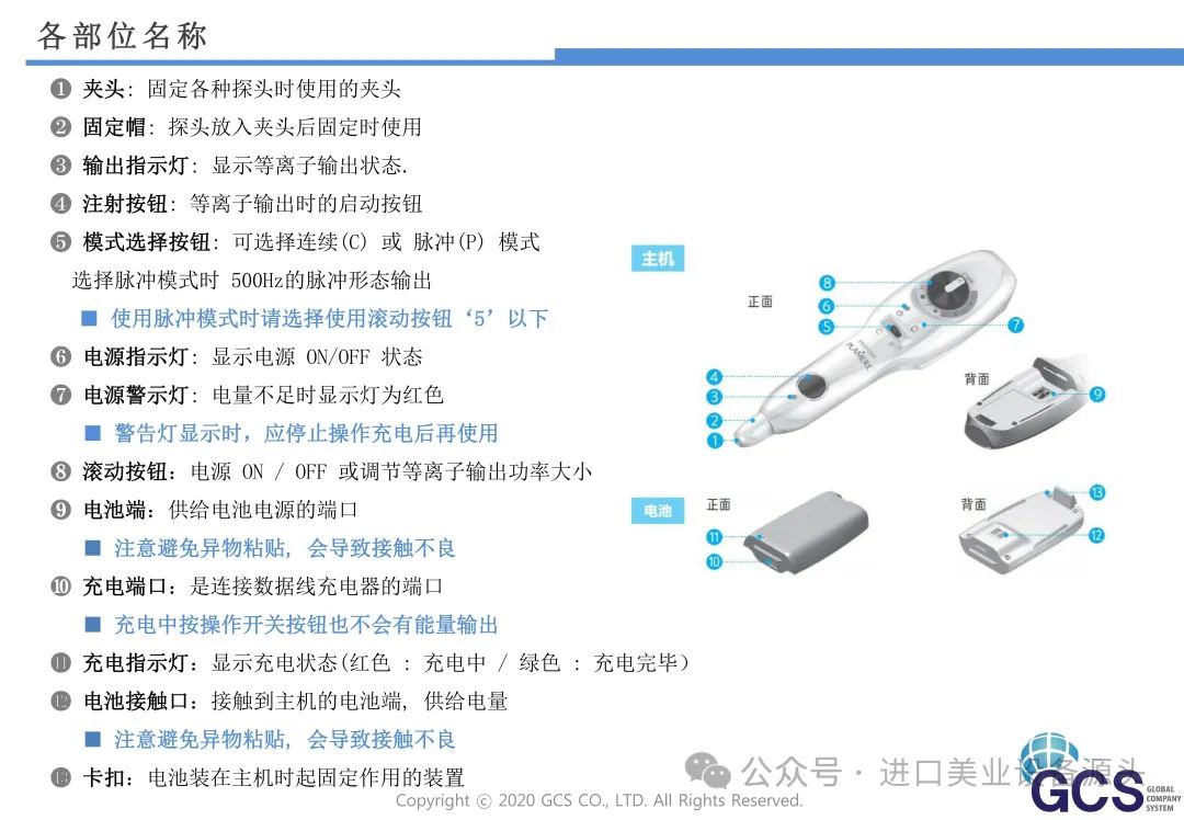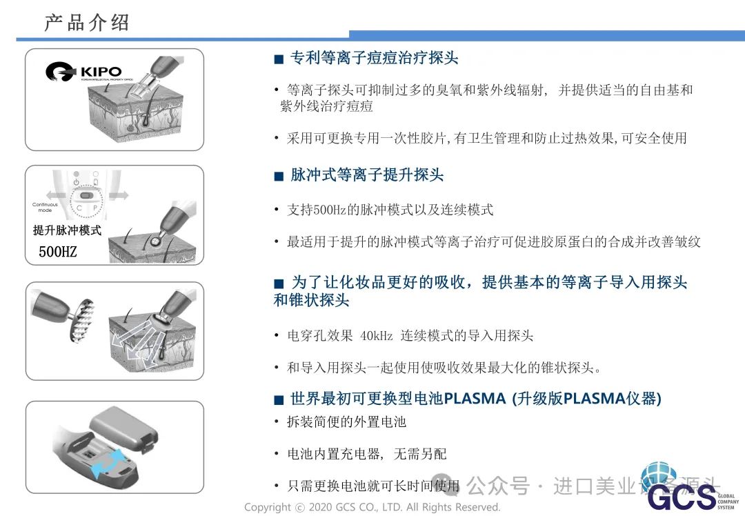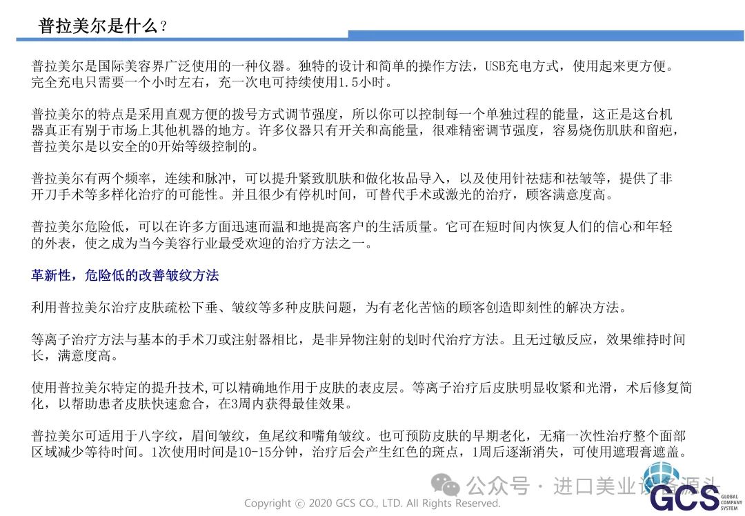- 等离子技术:GCS普拉美尔等离子美容仪采用先进的等离子技术,能够精确地作用于肌肤,刺激皮肤细胞的活性,促进胶原蛋白的生成。