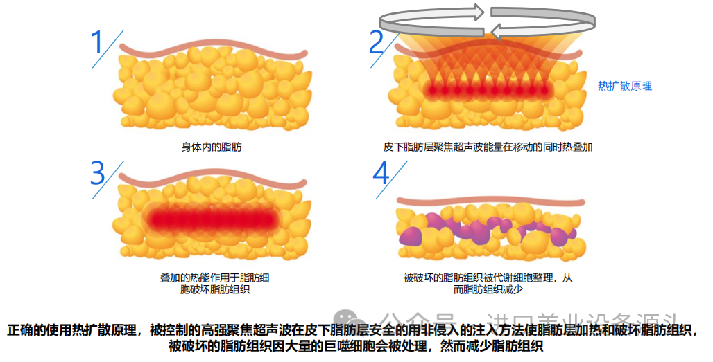 利用丽肤特拉的热扩散技术无痛的在皮下脂肪层可有效的注入能量。